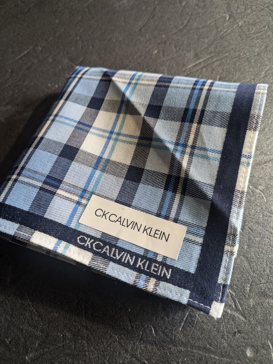 - CK カルバンクライン メンズ ハンカチ 48×47.5cm 綿100% 紳士 チェック ネイビー系 / ブルーミング中西