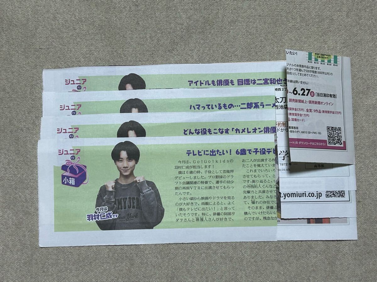 - 読売中高生新聞 ジャニーズJr. 羽村仁成(全4回) Go!Go!kids コラム オフショット