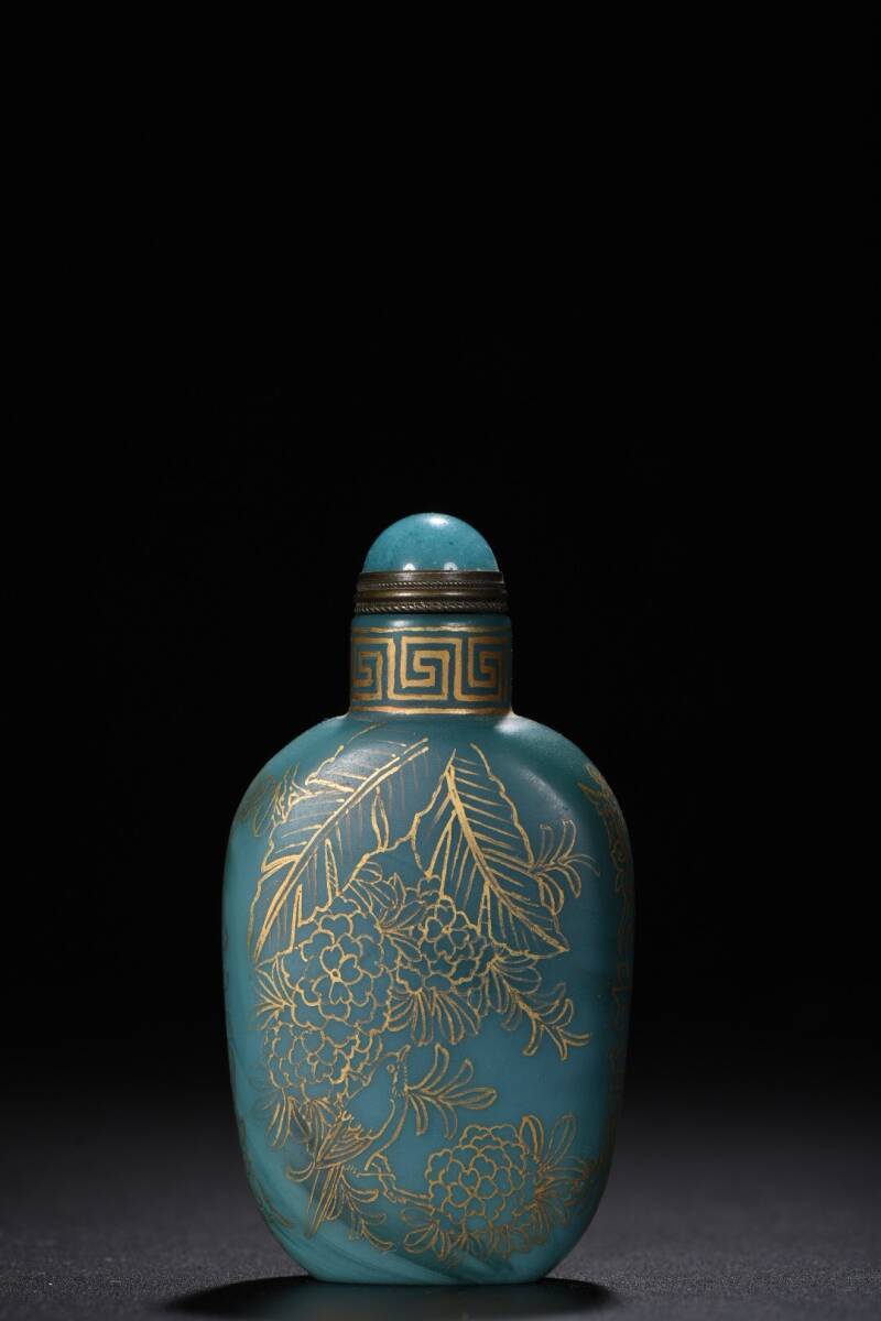 - 『館蔵珍品 琉璃製 細密彫 描金 花鳥紋 鼻煙壺』根付 裝身具 貴重物品 収蔵品 中国古美術