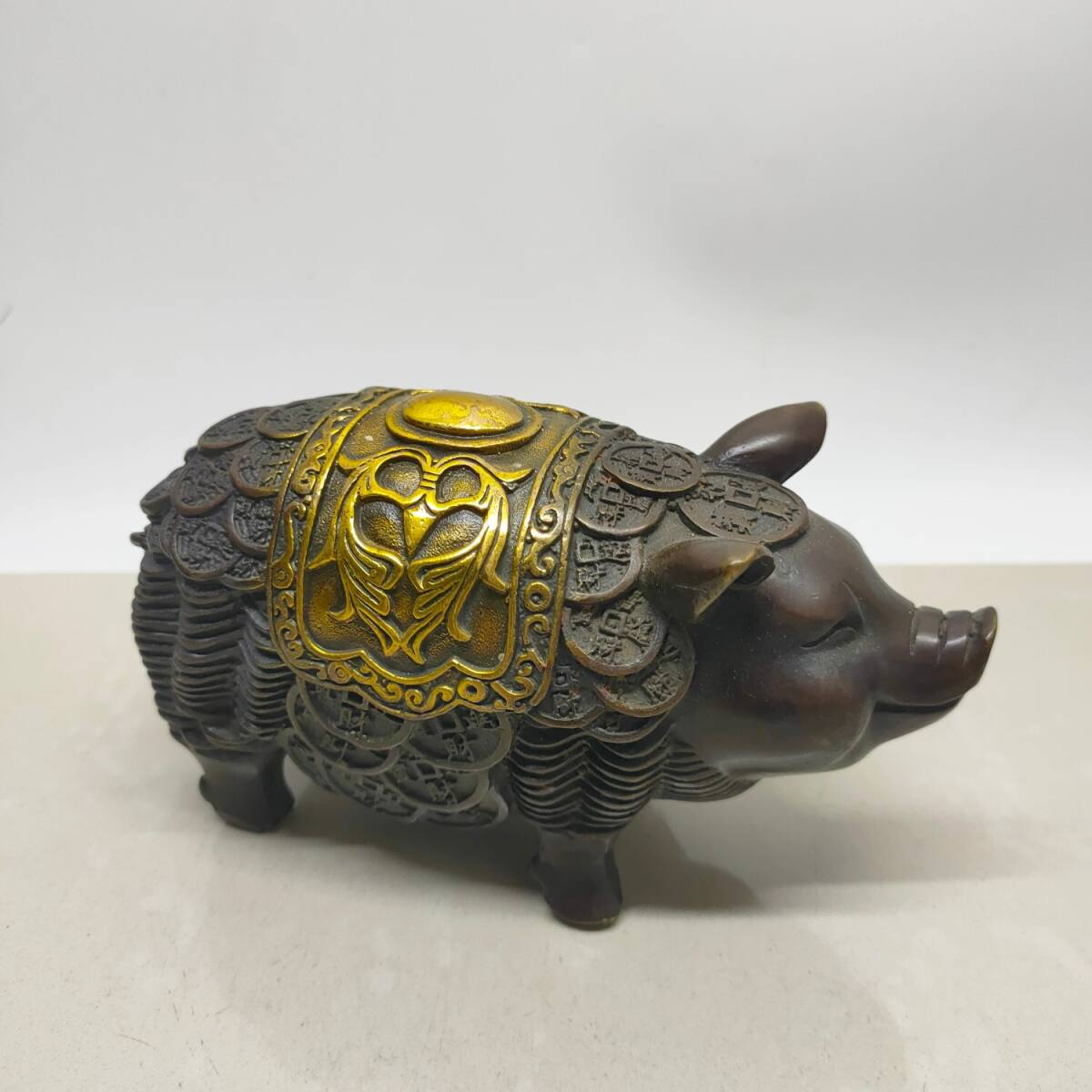 - ▽鴻▽ 黄銅製 塗金 發財豬 置物 賞物 古賞物 中国古玩 中国古美術