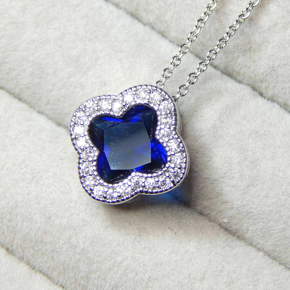 - 新品★送料無料 極大粒 絢爛 厳選 極希少 四つ葉クローバー 24連サファイアCZダイヤモンドネックレス ジルコニア レディースアクセサリー