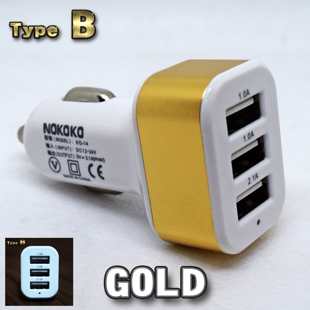 - ゴールド USB 3ポート シガー ソケット ライター 充電器アダプター