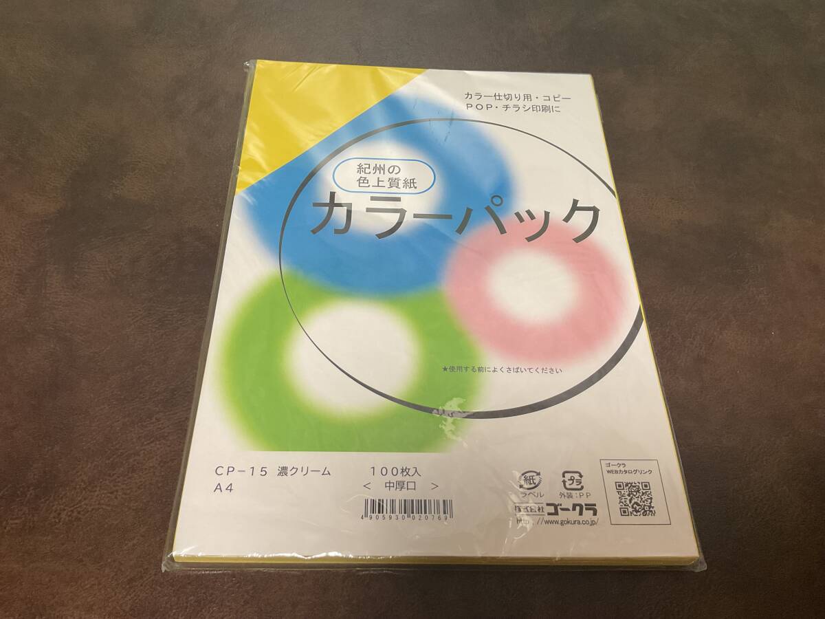 > ⑥新品★紀州の色上質紙 カラーパック CP-15 濃クリーム 100枚入 A4 中厚口 カラー仕切り用・コピー POP・チラシ印刷に