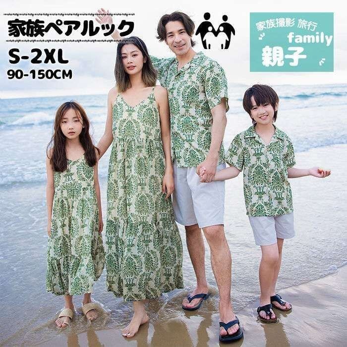 - 親子ペア ワンピース 親子 ペアルック 親子コーデ 親子お揃い アロハシャツ メンズ 花柄シャツ 家族ペアルック カップル ペアシ