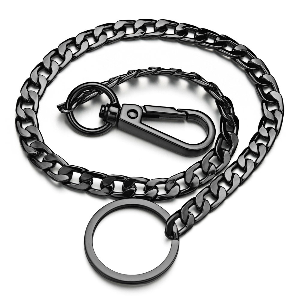- メンズ ウォレットチェーン 黒 42cm キーホルダー アクセサリー ヒップホップ ベルトチェーン