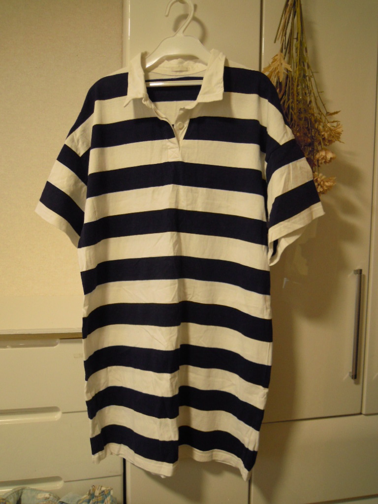 - 【高】GU ジーユー ラガーシャツワンピース ネイビー M