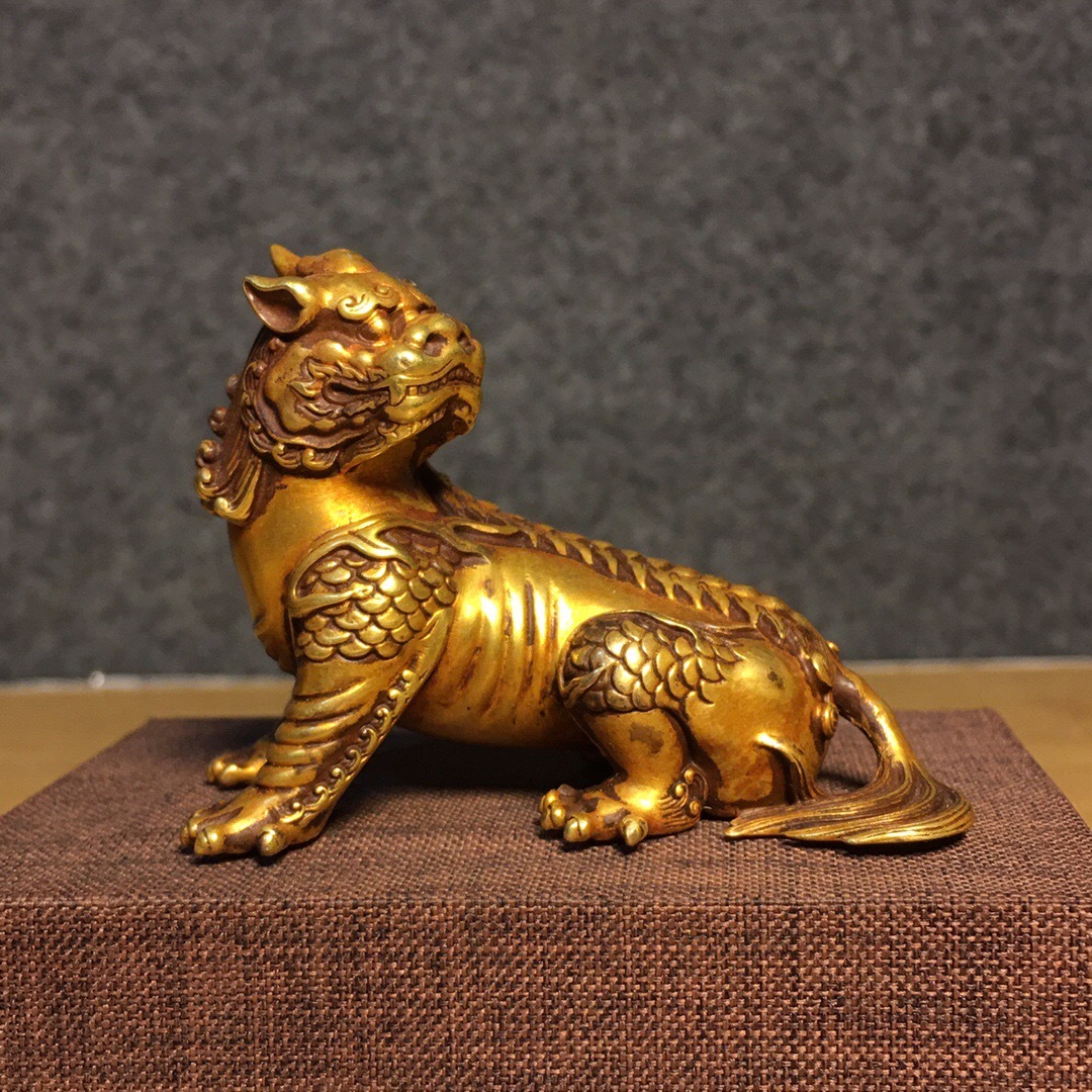 - 【超珍館蔵】紫銅製 塗諦聽 置物 賞物 古賞物 古美術品 稀少珍蔵品