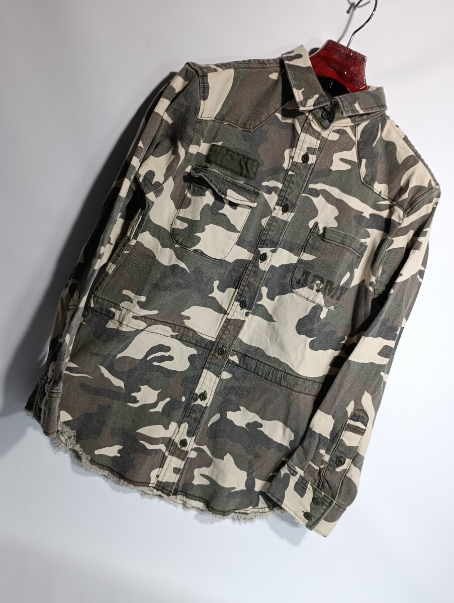 > 179 / WG NICOLE CLUB ニコルクラブ ステンシルプリント 迷彩 カモフラージュ柄 長袖 ストレッチ ミリタリーシャツ 38 M程