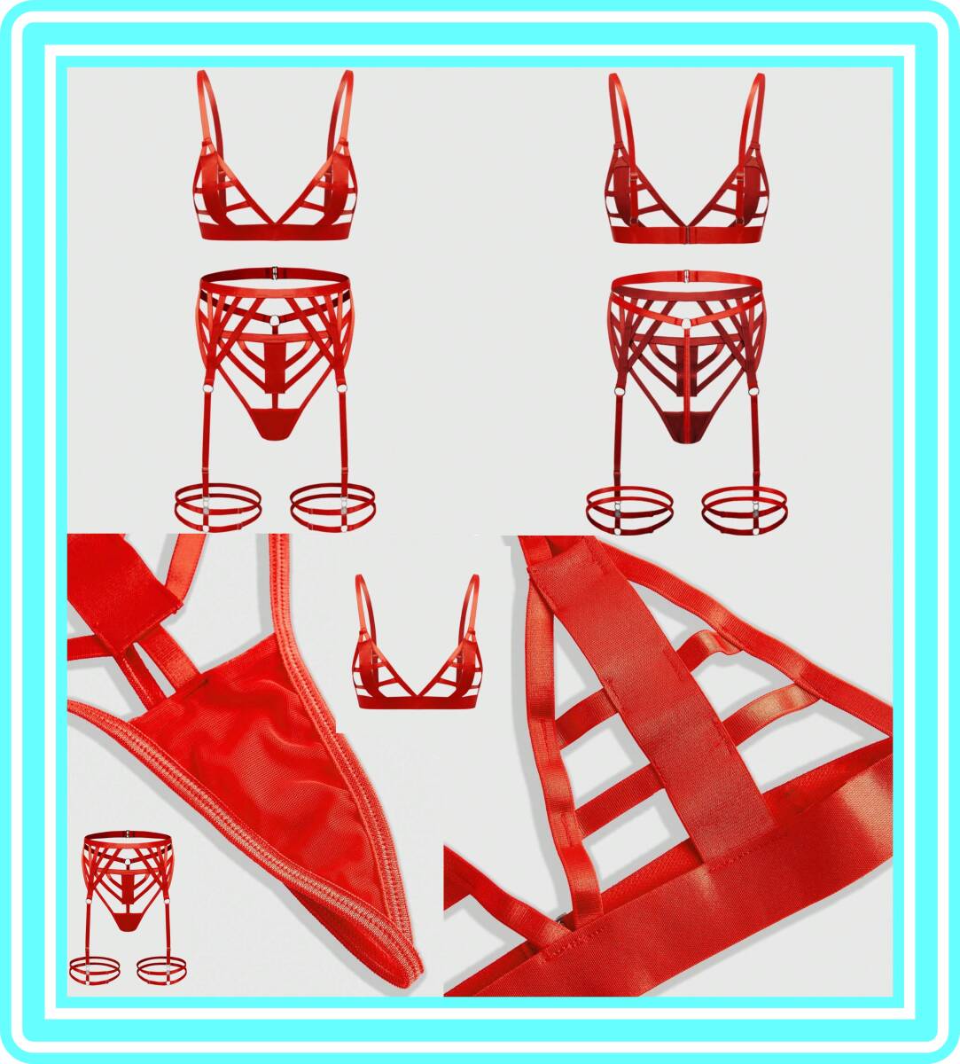 - ★超素敵★ハーネスデザイン★ガーターランジェリーセット★レッド★カットアウト★Tバック★大人可愛いくSexy★O5