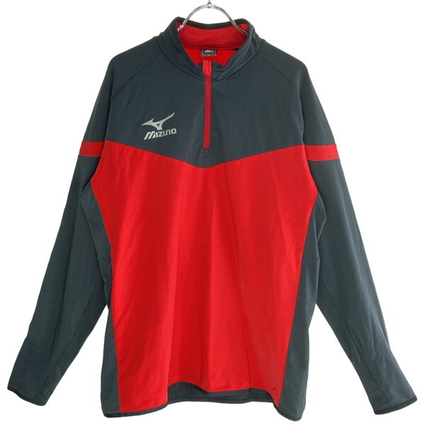 - 古着 メンズL MIZUNO/ミズノ 裏起毛 ハーフジップ トレーニングトップ サッカー フットサル 練習着 レッド/ブラック/シルバー P2MC6543