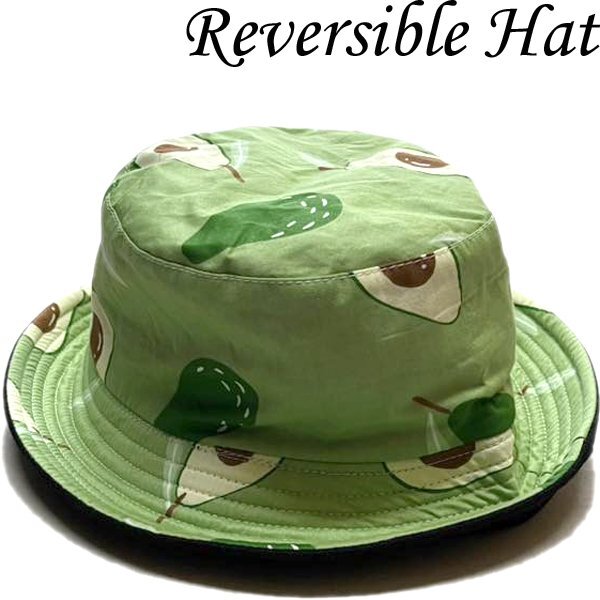 - 1点物◆アボガド総柄リバーシブル緑黒バケットハット帽子USA古着メンズレディースOKアメカジ90sストリートUSAキャップ中古ブランド348843
