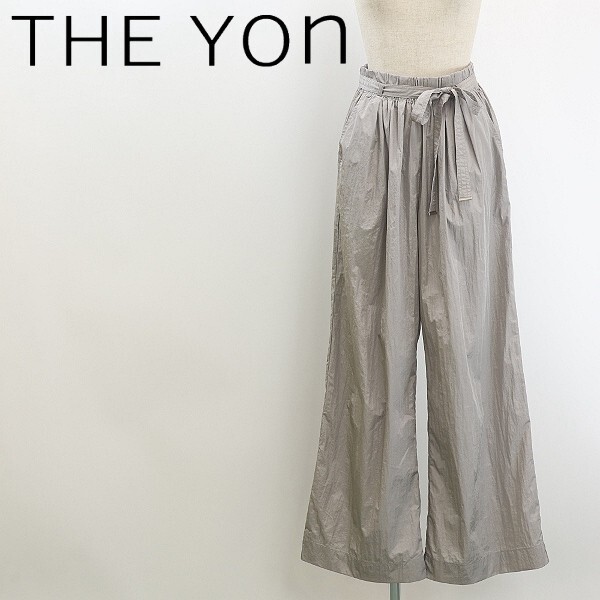 - 美品◆THE YOn ザヨン リボンベルト付 シャイニー ナイロン タック ワイド パンツ グレー F