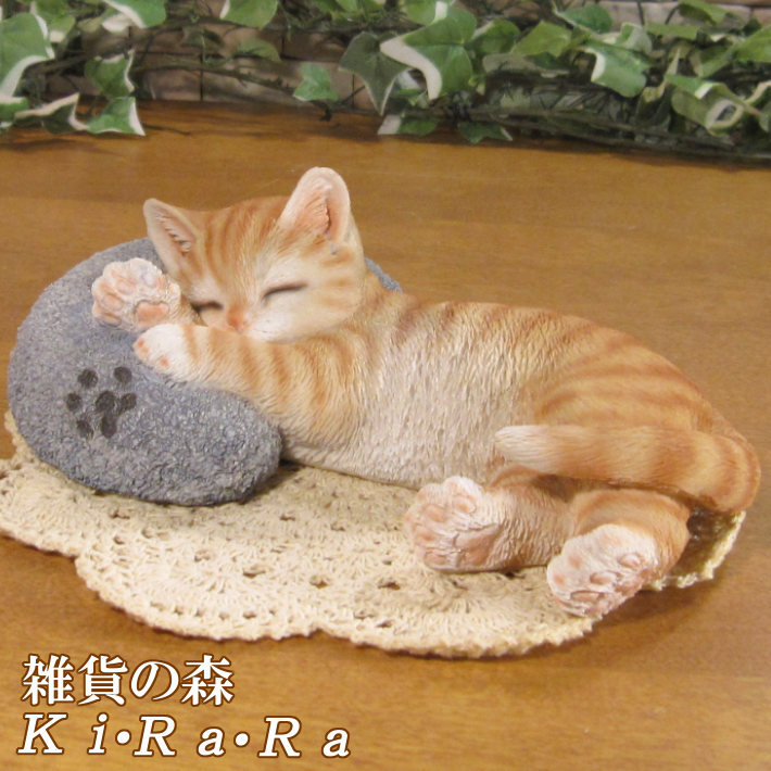 - 置物 動物 可愛い 猫の置物 クッション付き スリーピングベビーキャット リアル ねこ ガーデニング 店舗 カウンター装飾