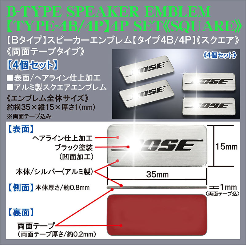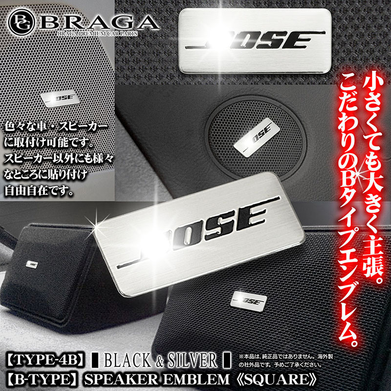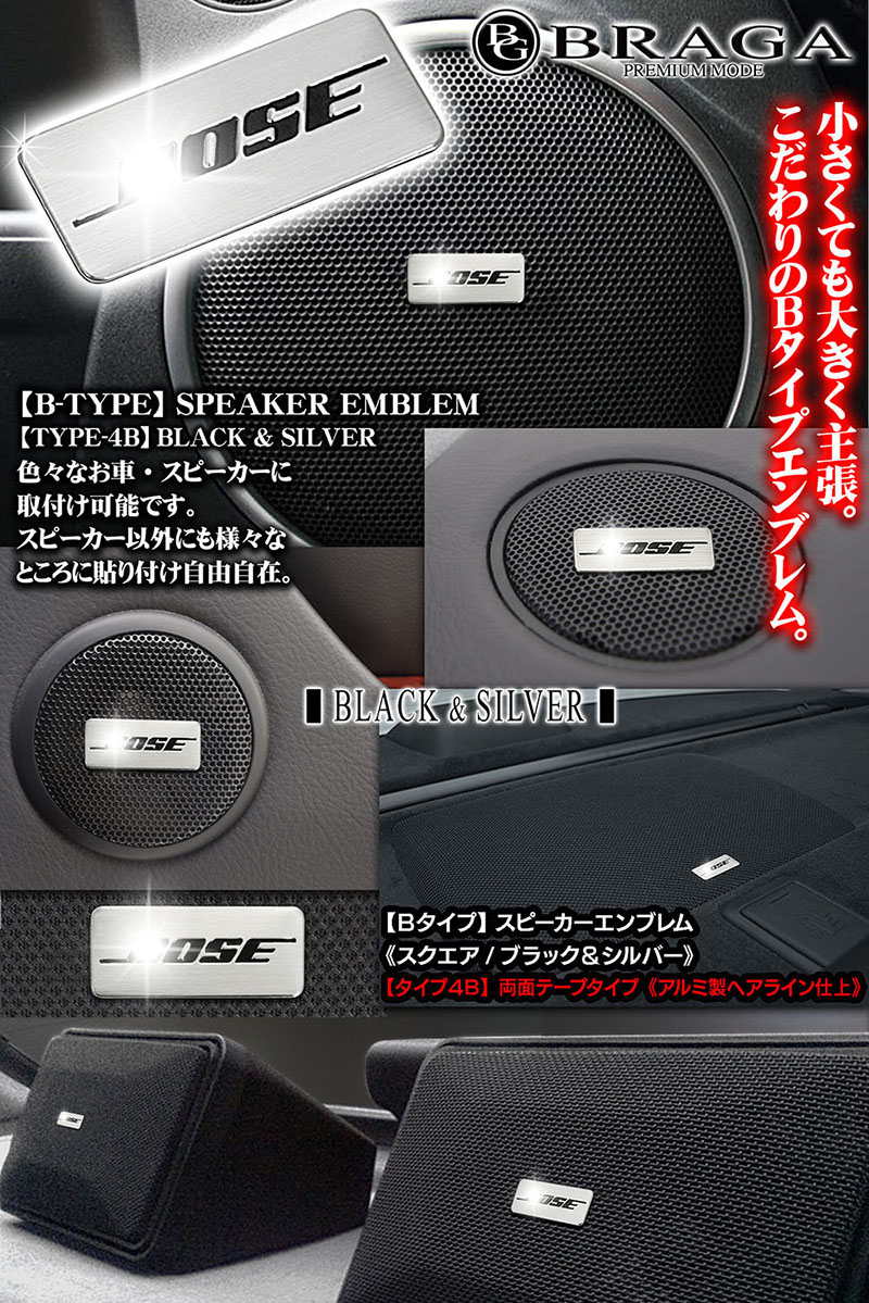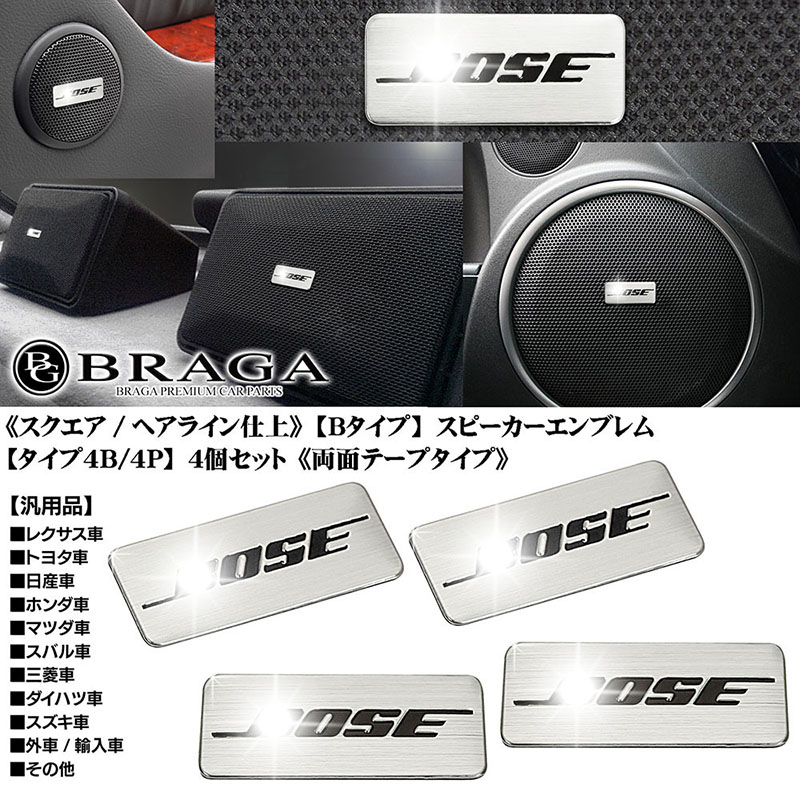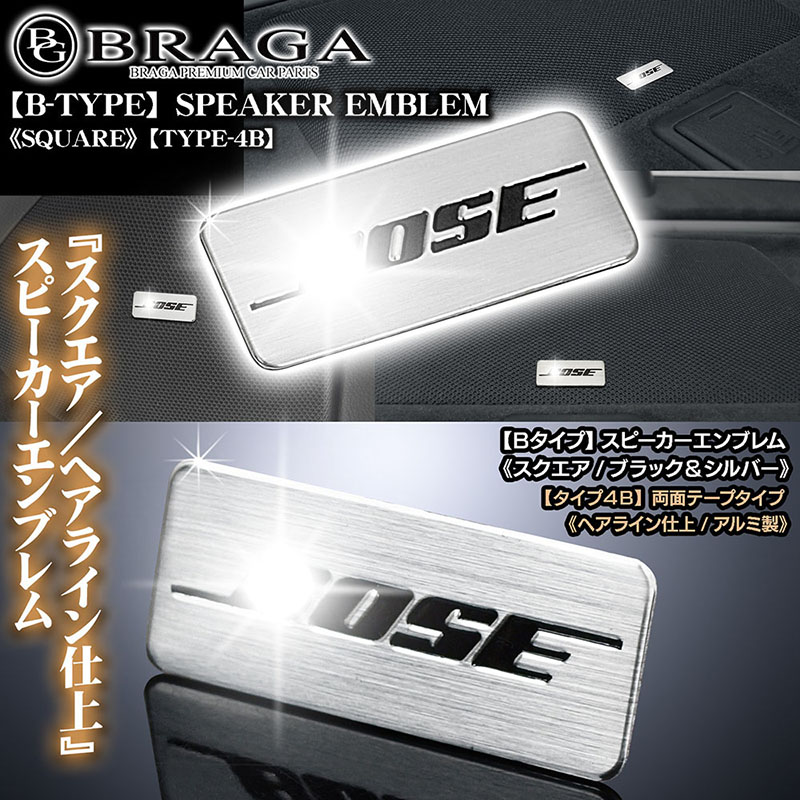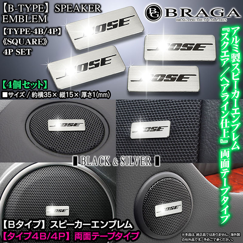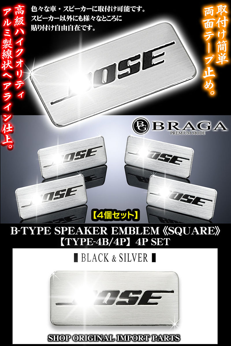 > タイプ4B/4P 両面テープBタイプ/スピーカー スクエア エンブレム/4個セット/アルミ製 ポリッシュ 鏡面仕上/互換品/ブラガ BG BRAGA