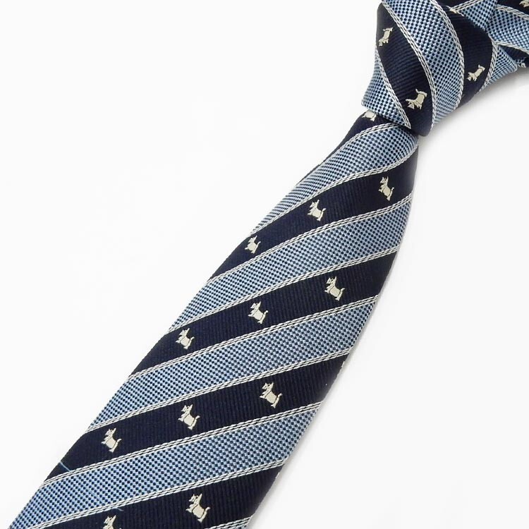 - 京都西陣織 ネクタイ シルク100% 濃紺×空/ストライプ×犬 メール便OK NJX34-a