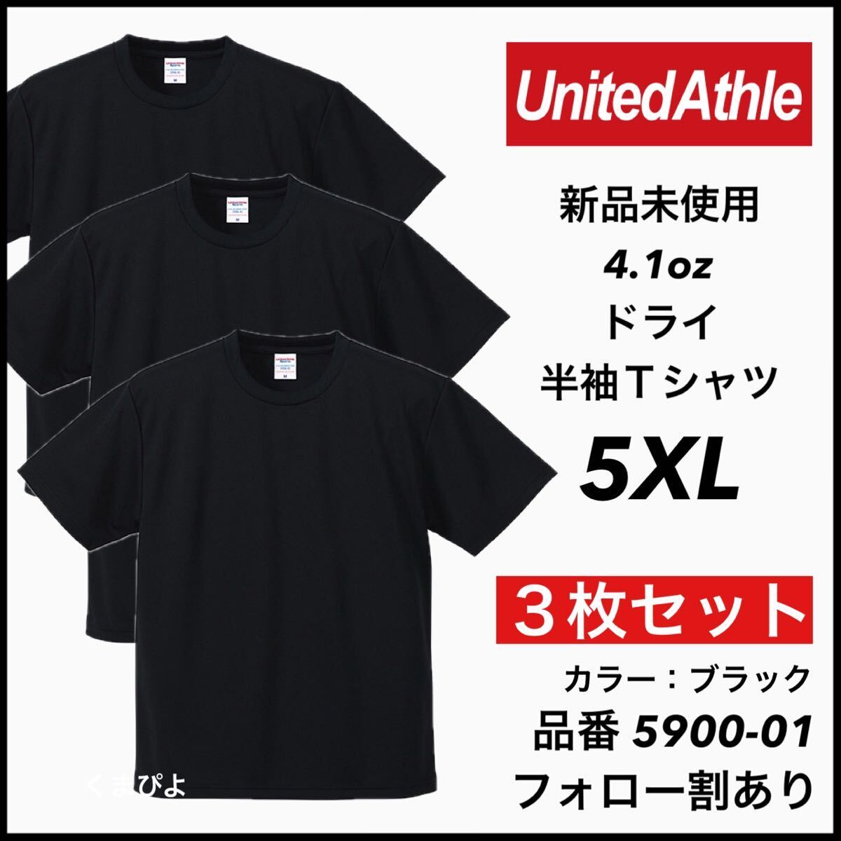 - 新品 ユナイテッドアスレ 4.1oz 半袖 ドライアスレチックTシャツ 無地 吸汗 インナー スポーツ ダンス 黒 ブラック 3枚 5XL ビッグサイズ
