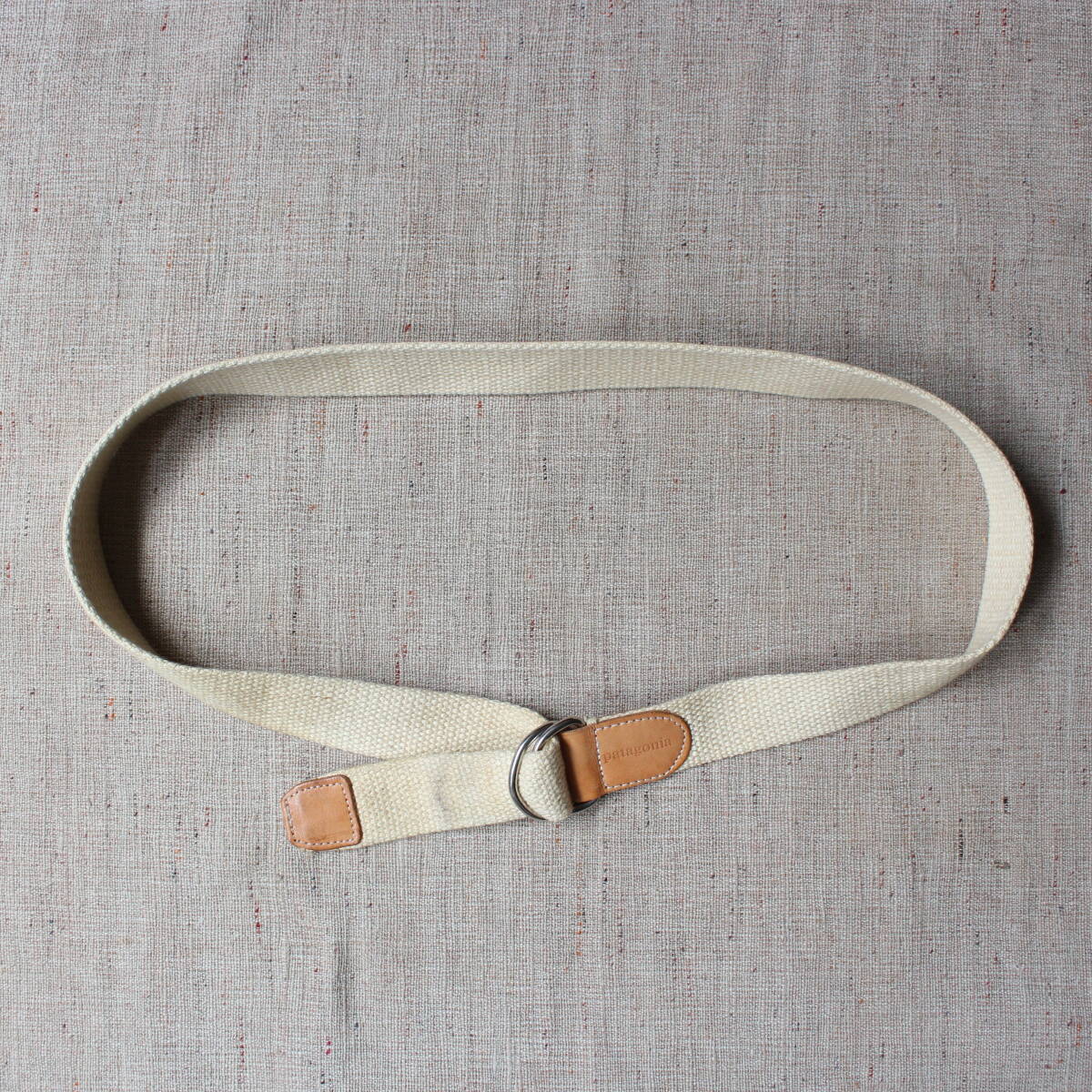 - 珍品 80-90s パタゴニア Patagonia コットン×レザー ヴィンテージ リングベルト 全長約98cm×幅3cm 古着 アウトドア キャンプ 釣り 登山