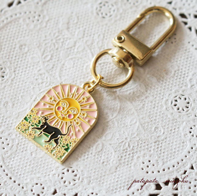 - 猫 の キーホルダー タロットカード SUN 黒猫 キーチャーム ねこ ネコ 雑貨 小物 パタミン