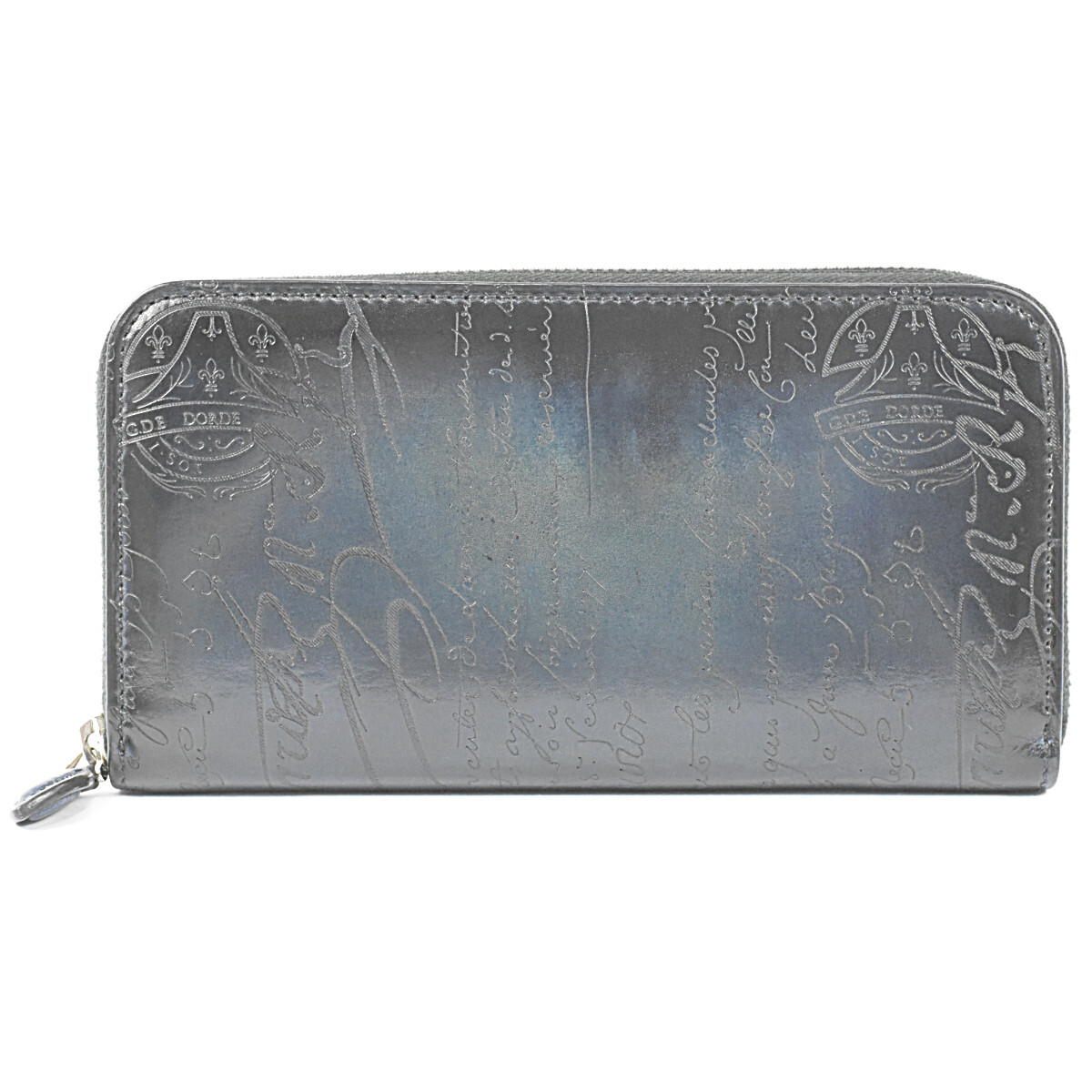 > ベルルッティ 美品 Wスタンプ ネイビー パティーヌ 美しいパティーヌ ラウンド長財布 スクリットカリグラフィ イタウバ BERLUTI