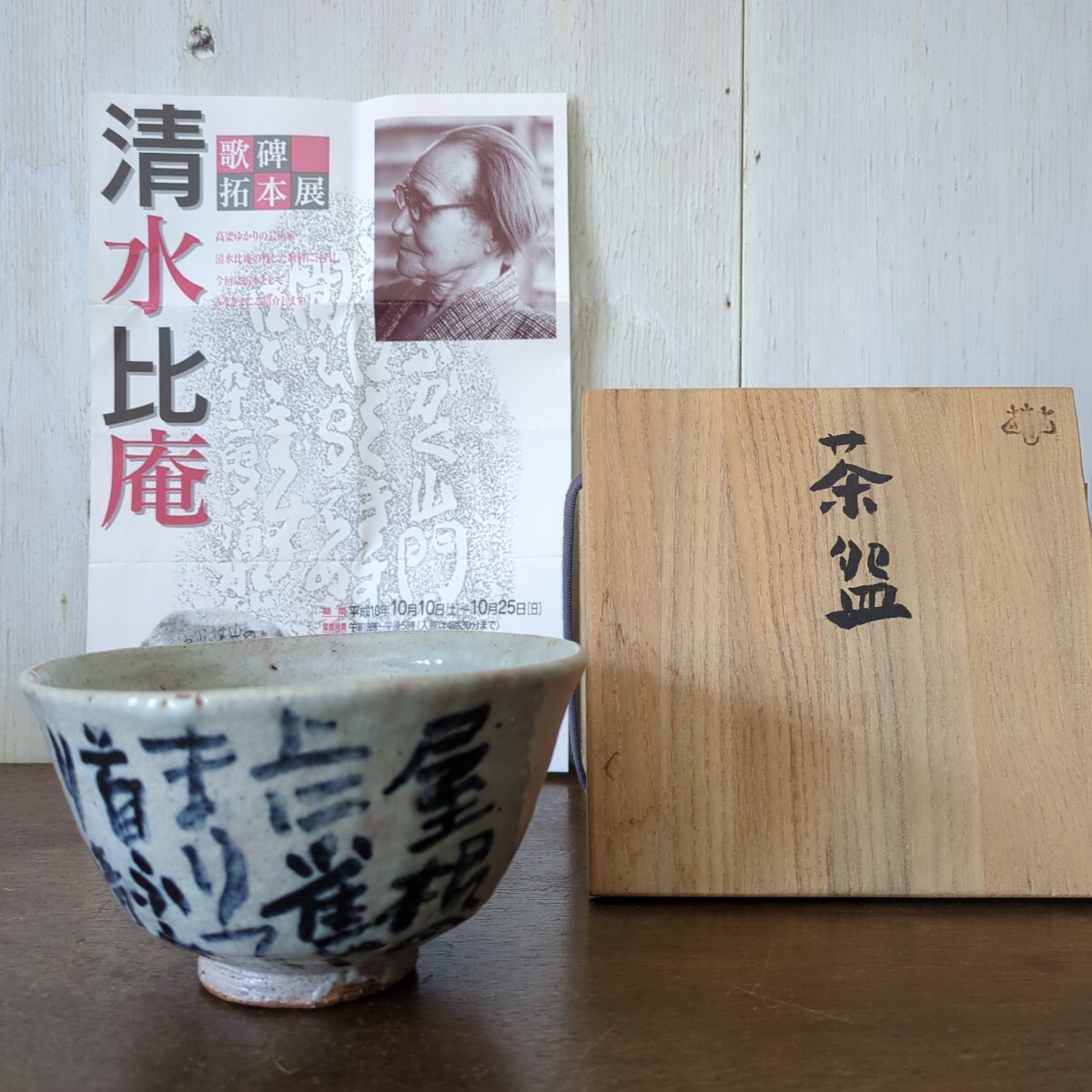 - 清水比庵 茶碗 共箱 茶器 茶道具 岡山 歌人 書家