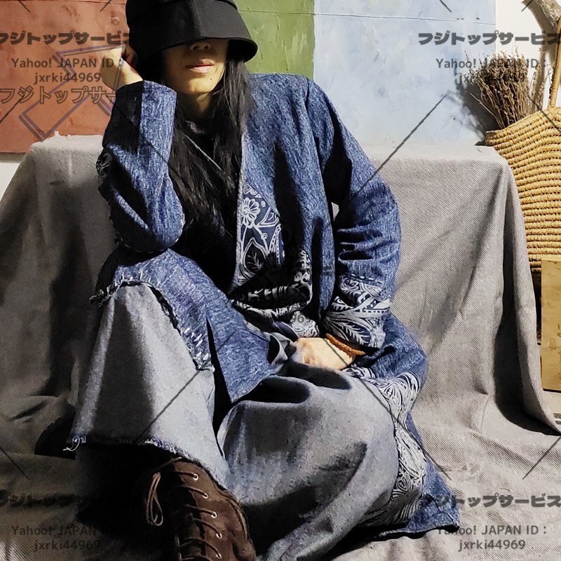 - 今季新作レディーストップス デニムコート ロング丈 羽織物 ゆったり手芸