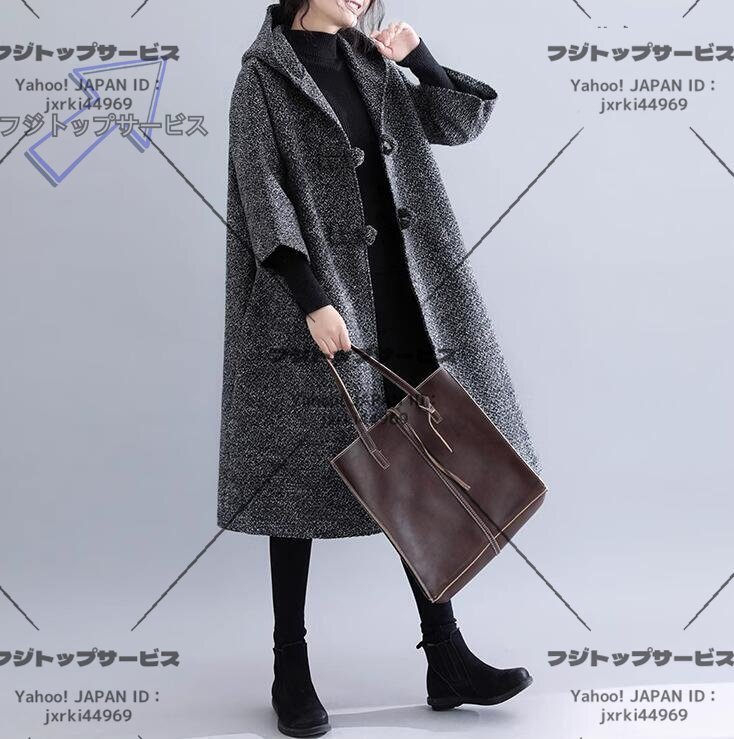 - 人気品L~XLサイズ秋冬 カジュアル おしゃれ 厚手 フード付きゆったり大きいサイズ ロング丈コート アウター 灰
