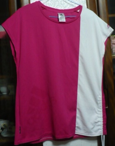 - 美品 adidas【アディダスジャパン(株)】製ポリショートスリーブカラーブロック(半袖)Tシャツ 女性(レディース)L ブラストピンク×白F45328