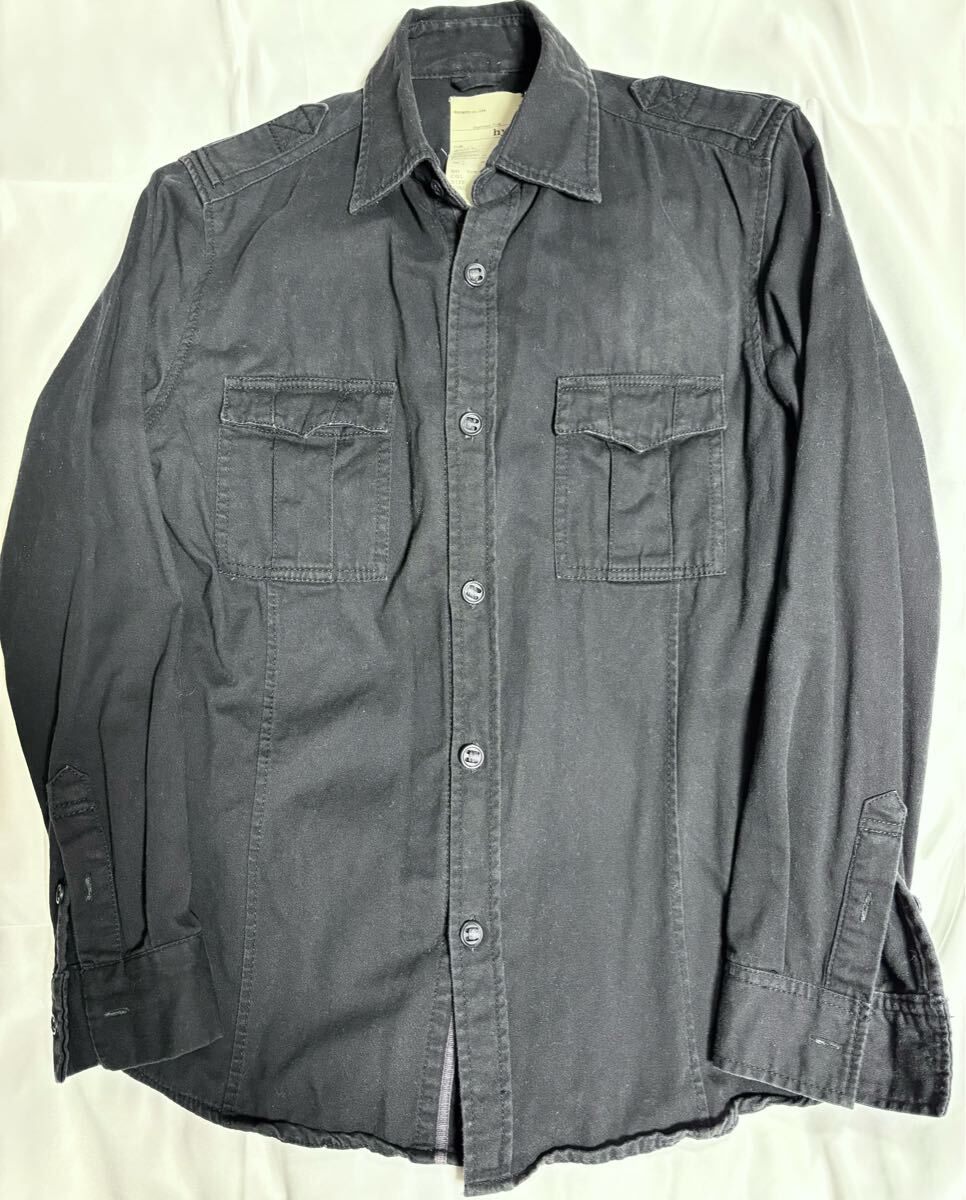 - 日本製 hymミリタリーシャツ 46 ブラック コットン 長袖シャツ ワークシャツ