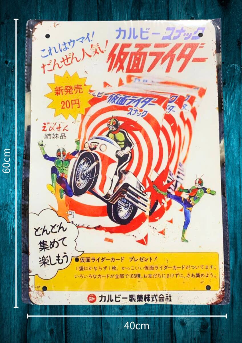 - 大型60cm 仮面ライダー / カルビースナック 復刻 レトロ看板!! 新品・送料無料