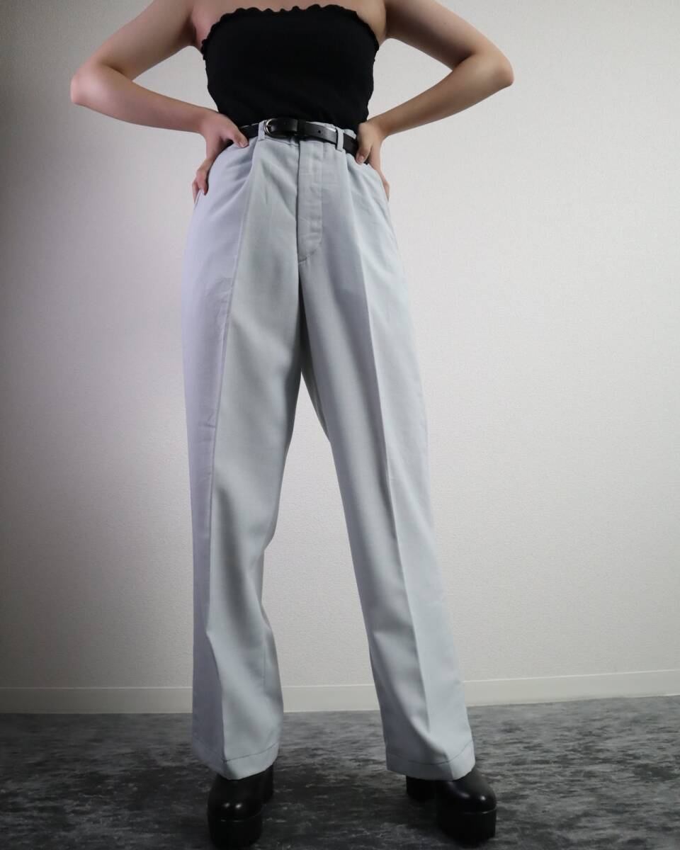 > P1K885/08 1980s- pale tone wide-straight slacks 70s 80s ペールトーン ワイド ストレート コットン スラックス W31 水色 SCOVILL ZIPPER