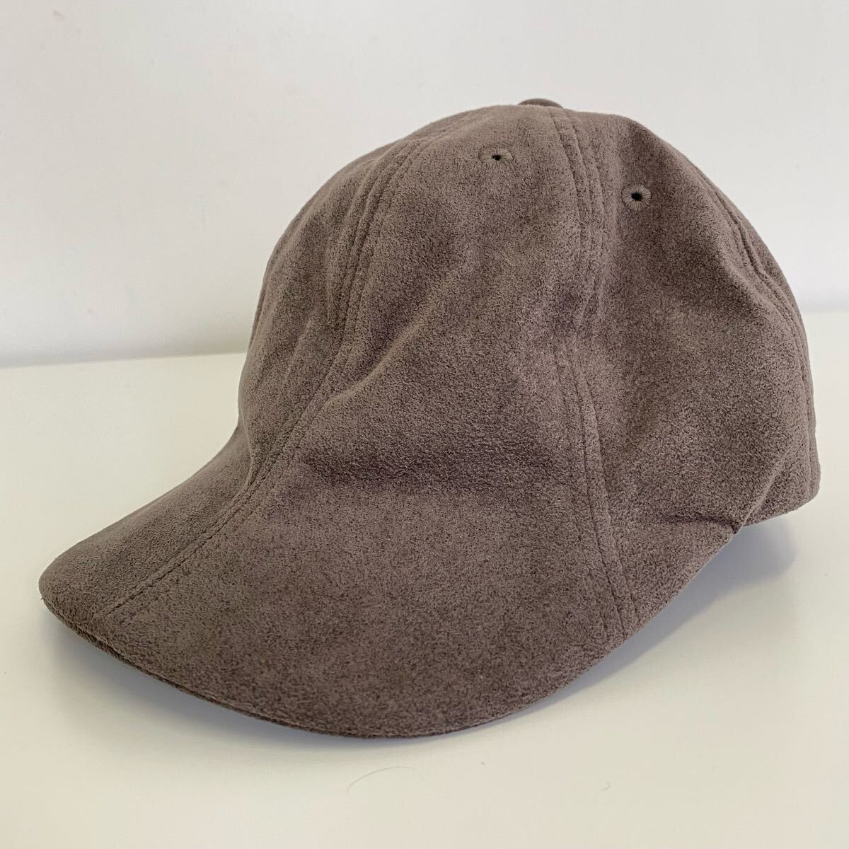 > ★ 美品 レザー調 8パネル キャップ グレージュ ◆ ベルト付き 野球帽 帽子 ユニセックス ◆ HICOSAKA ヒコサカ ◆W10 SLん9P-23
