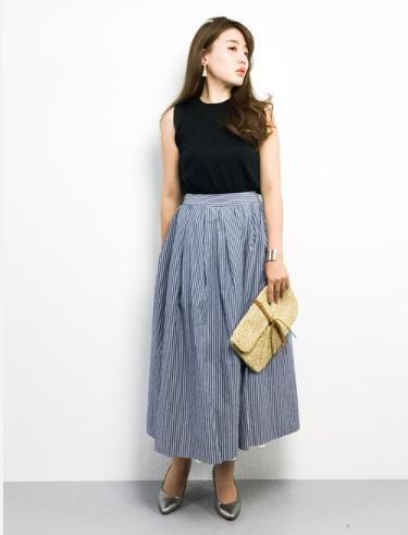 - トゥデイフル フレアスカート ストライプ 38 M ブルー □