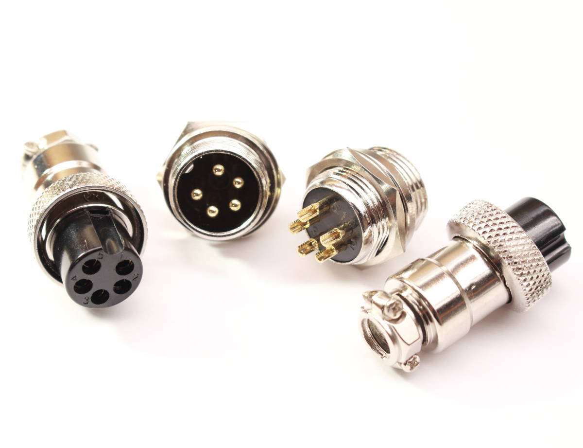 - 銅製金メッキ電極丸型コネクタ GX165 φ16mm 5芯/5極 オス2個メス2個の2セット メタルコネクタ プラグジャック アナログ電源用 送料180円
