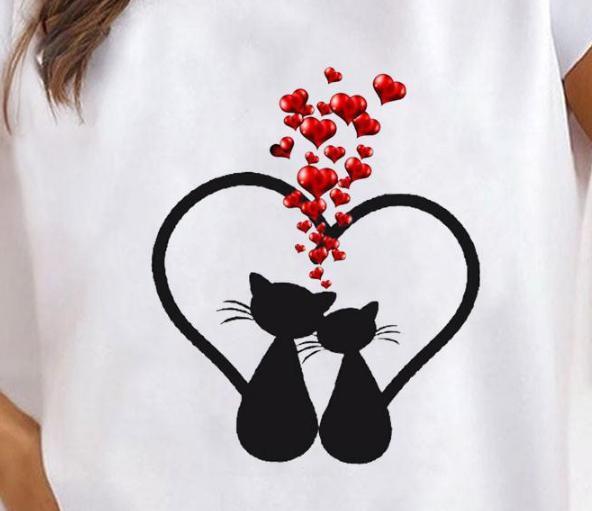 > Tシャツ レディース 半袖 猫柄 綿100% イラスト シンプル ネコ ねこ トップス S