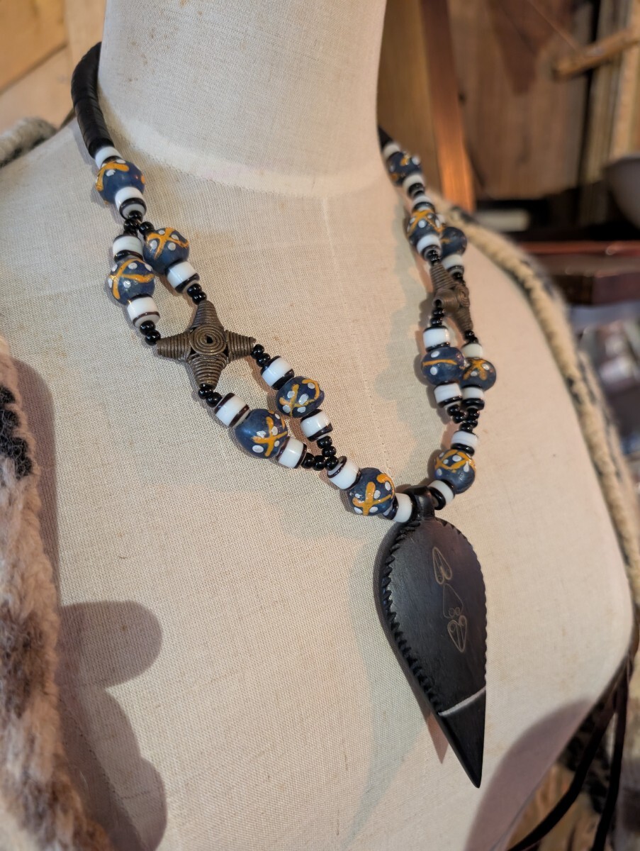 - レア【アフリカン ネックレス】民族工芸品 ヴィンテージ とんぼ玉 トレードビーズ アフリカビーズ 伝統工芸 Africa accessory necklace