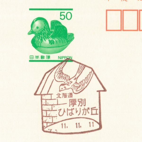 - 風景印☆初日☆北海道・厚別ひばりが丘・H11.11.11