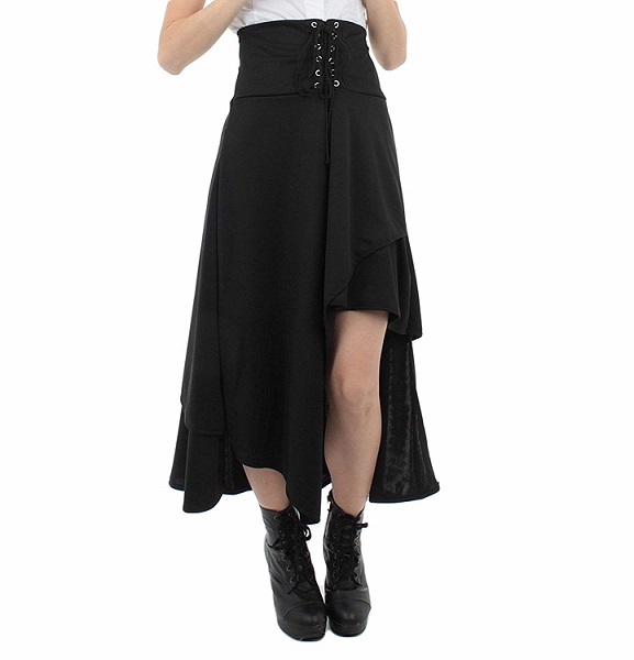 - ゴシック コルセット ロング スカート (黒 XL) アシンメトリー ハイウエスト ゴスロリ パンク