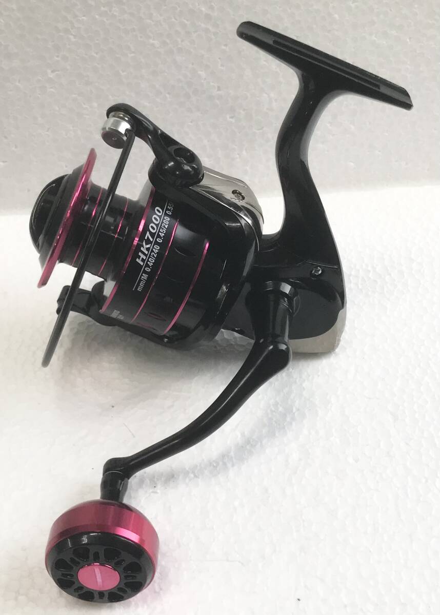 - スピニングリールHK7000☆送料無料☆新品未使用☆ブラックピンクメタ☆左右ハンドル変更可☆ロータリーグリップ☆アルミスプール☆330g☆