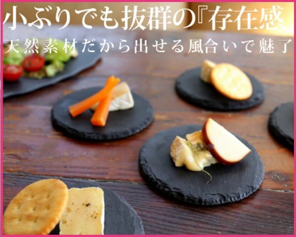 - 【送料無料:4枚・4個:スレートプレート:丸型:直径:10cm】★おしゃれ:天然石:お皿:プレート★和食 洋食 中華★皿 石皿 石 角皿