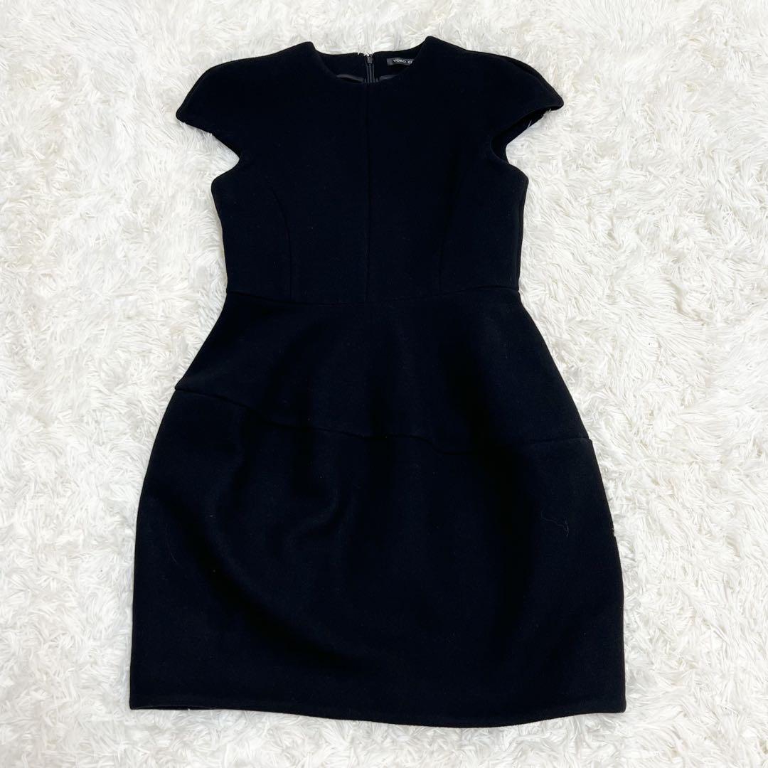 > YOKO CHAN ヨーコチャン ウール 毛 キャップスリーブ バルーン ドレス フレンチスリーブ 黒 ブラック ワンピース 膝丈 半袖 38 M