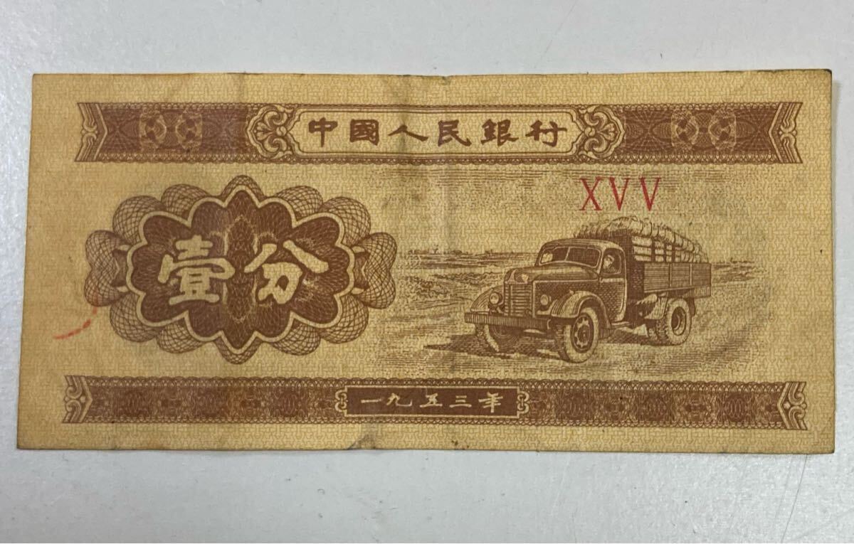 - T5-008・中國人民銀行*古紙幣・壹分1953年 *アンティーク古札