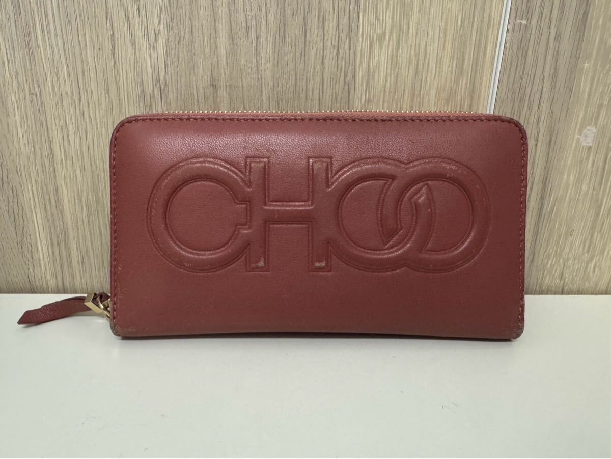 - 【中古品】JIMMY CHOOジミーチュウ BETTINA ROSEWOODベッティーナローズウッド 長財布 ラウンドジップ レザー ファッション小物 箱付き