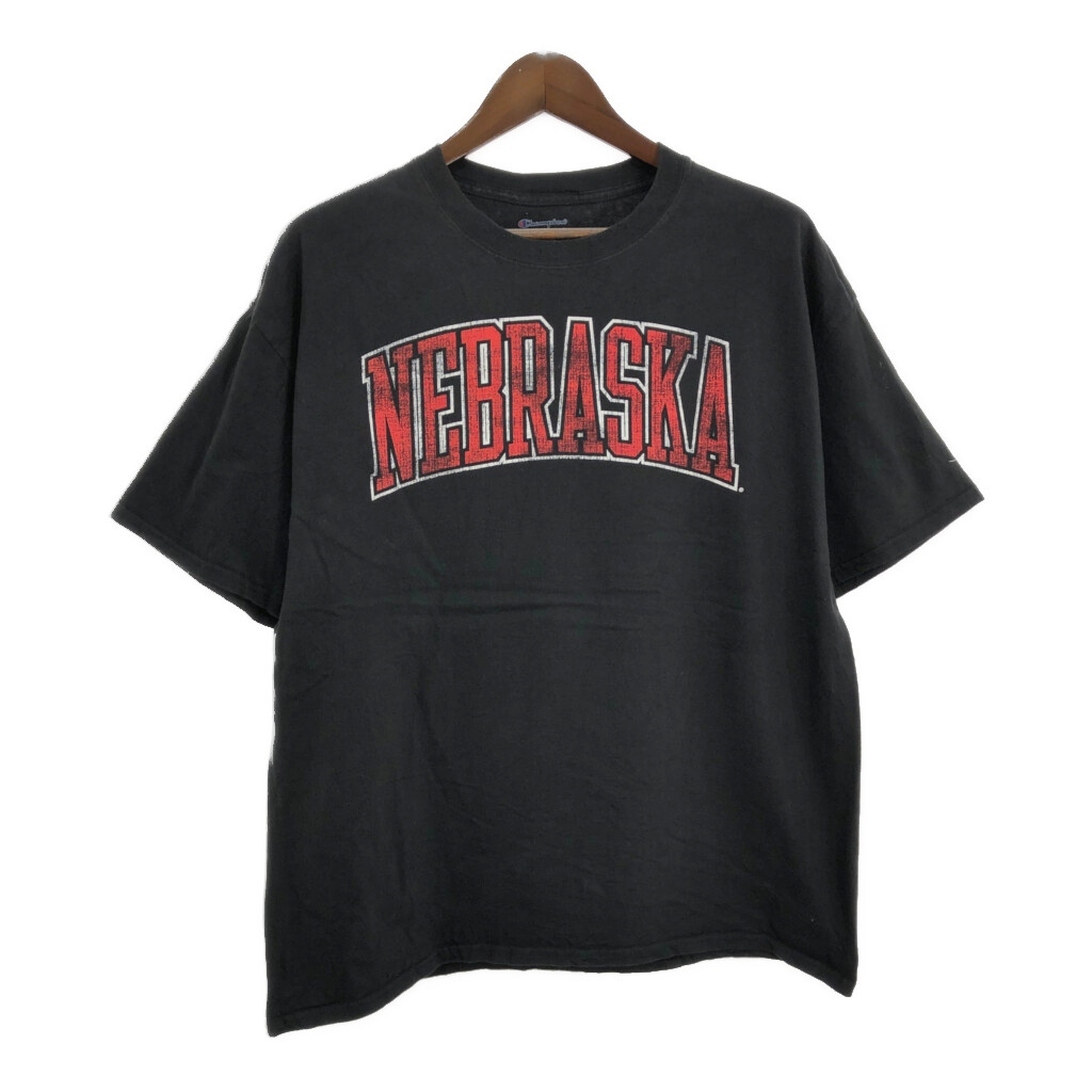 > Champion チャンピオン NEBRASKA ネブラスカ 半袖Tシャツ カレッジ ブラック(メンズ XL)中古 古着 U0410