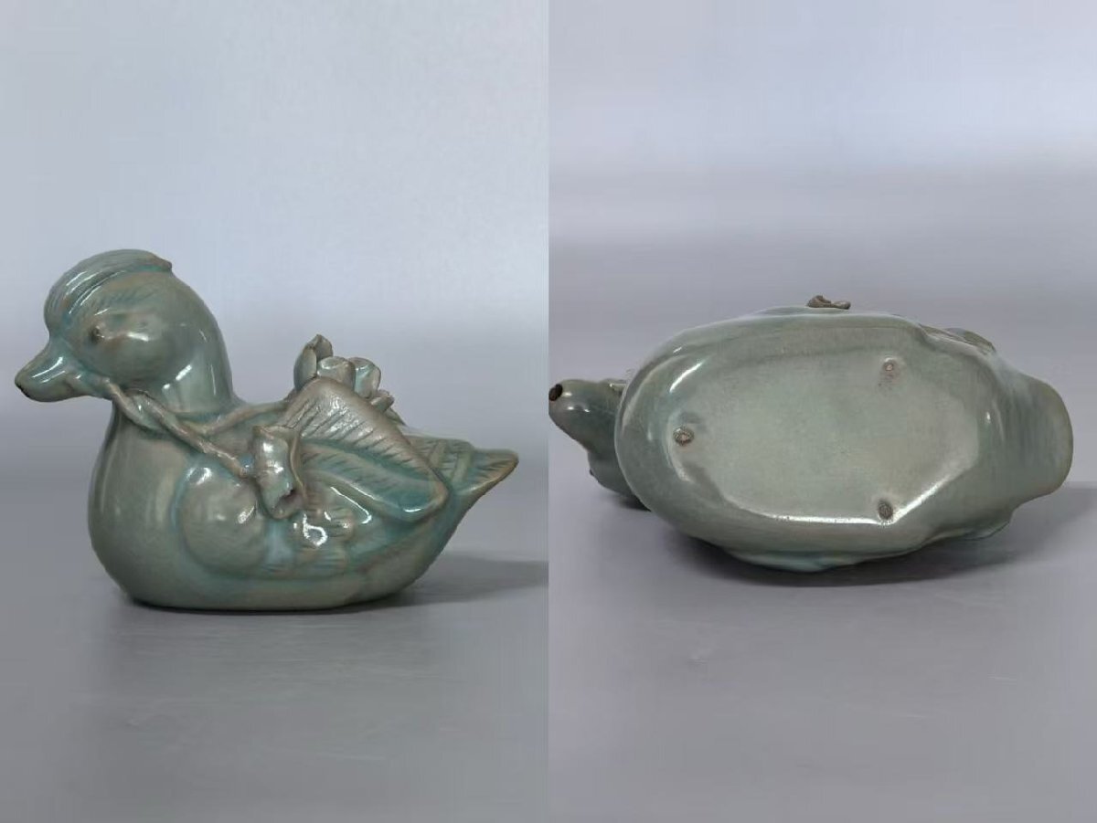 - ▼渡鶴羽▼P0921コレクター放出 朝鮮古美術 高麗磁 李朝時代 古高麗 高麗青磁鴛鴦水滴