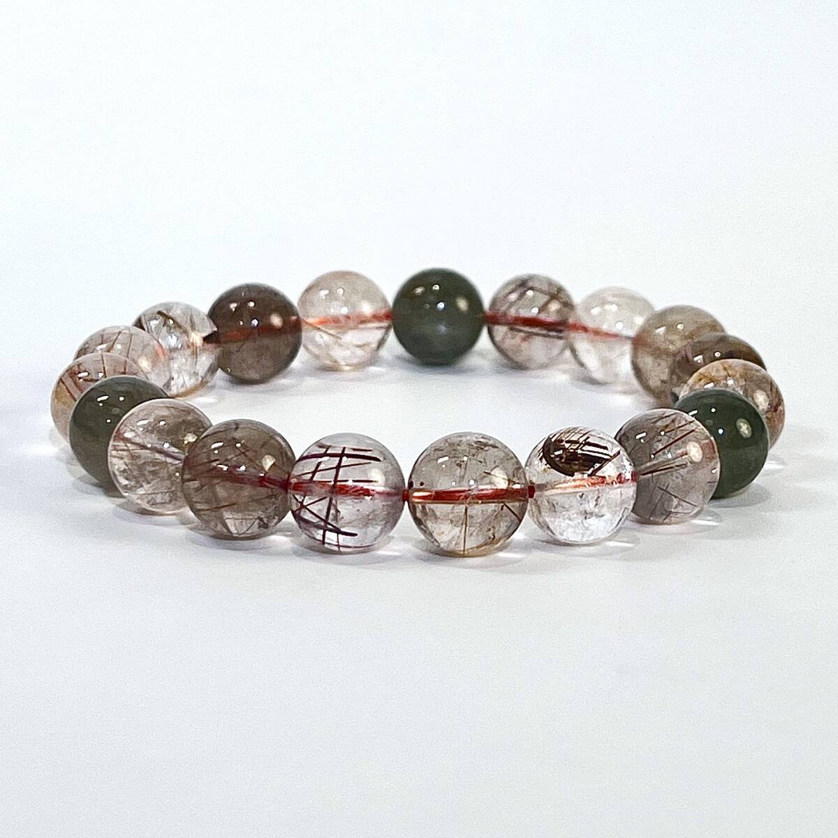 > 天然 ミックスルチルクォーツ ブレスレット 10mm 16.5cm 28g 天然石 針入水晶 レディース アクセサリー バングル 新品