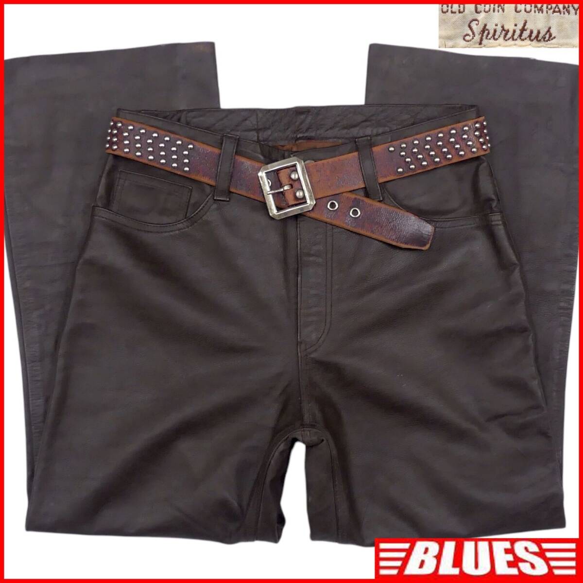 - 即決★OLD COIN COMPANY★メンズ L レザーパンツ オールドコインカンパニー 本革 スピリタス 茶 ロック バイカー