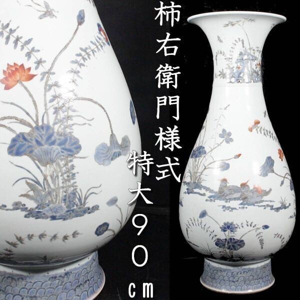 > 【爨】時代 柿右衛門様式 花鳥図色絵大花瓶 特大90cm 唐物骨董 T[E290]Re/22.10廻/GK/(240)