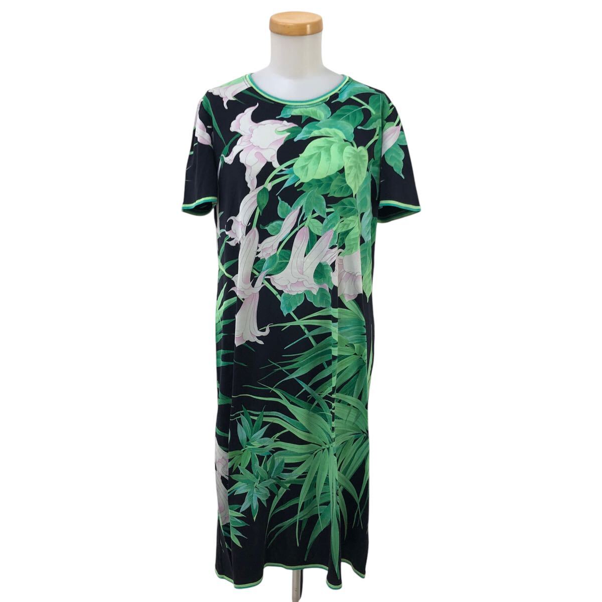 > m621-6 LEONARD FASHION レオナール ファッション フランス製生地使用 半袖 Tシャツ カットソー ワンピース ワンピ ブラック レディース L