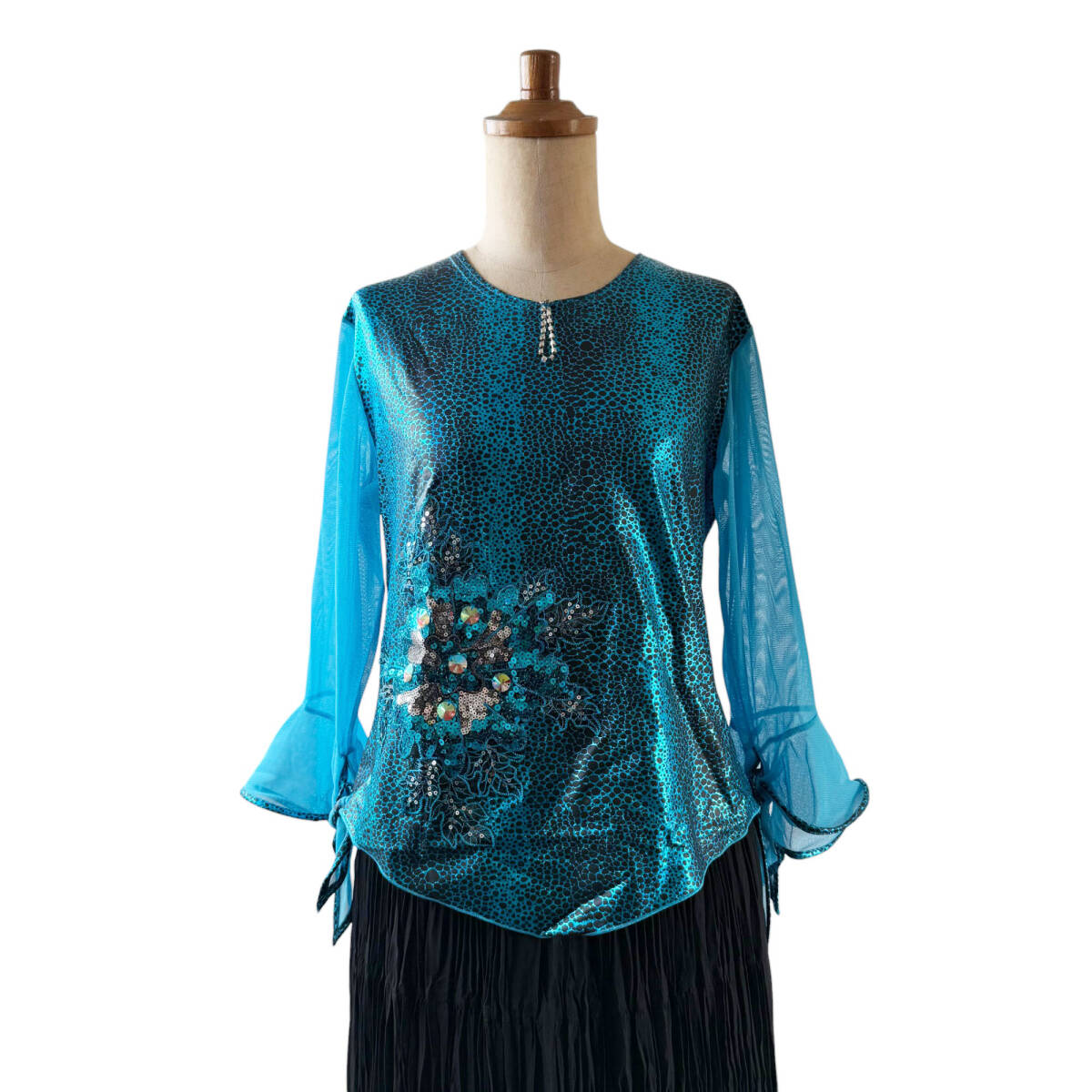 - N7-629 UN×Ⅱ ダンス衣装 トップス ブルー/青 スパンコール ラインストーン