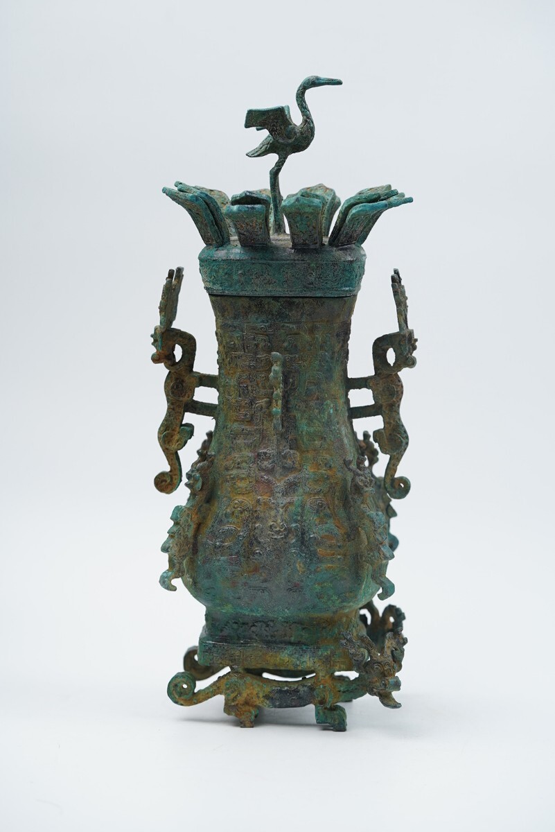 - 【萬藏】中国 青銅器 周朝 古銅製 酒器 唐物 収蔵品放出 置物 蓋物 古玩 古青銅 漢 細密彫刻